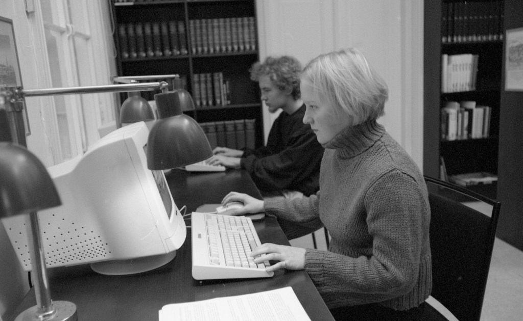 Opiskelijahuoneeseen on sijoitettu erilaisia opintoja tukevia palveluja. Siellä sijaitsevat oppiaineeseen tilatut aikakauskirjat, joita kannattaa pitää silmällä ja lueskella. Hyllyiltä löytyvät myös tutor-aineistot kolmesta mapista. […] Opiskelijoiden huoneeseen on tällä tietämällä tulossa tietokone, joka toimii yliopiston verkossa ja joka on tarkoitettu opiskelijoiden käyttöön. Kone tarjoaa mahdollisuudet seikkailla tietoverkoissa ja sähköpostissa ja sen kautta pääsee käsiksi myös verkossa toimivaan wp:hen, joten kirjoittaminenkin onnistuu. (Kulttuurihistoria NYT -lehti 1994–95).