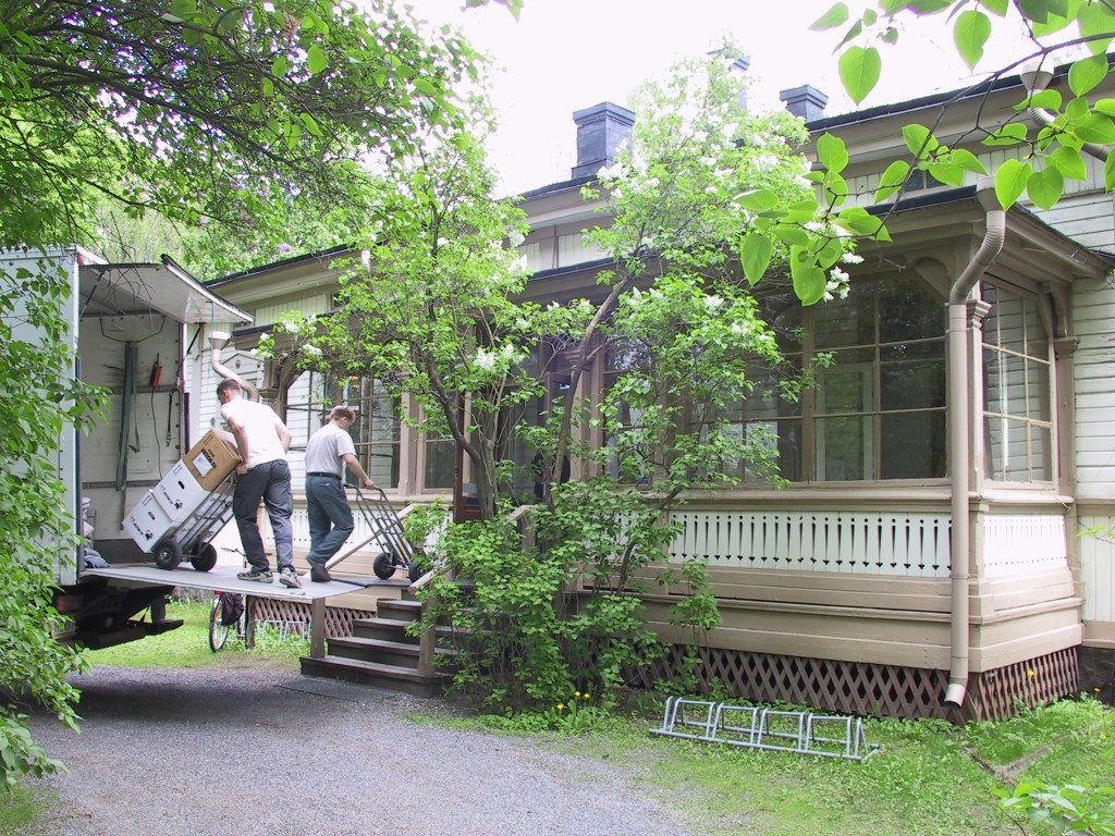 Keijo Virtasen rehtorikauden alussa Arwidssoninkadun rakennuksien pihoille ilmestyivät yhtenä kesänä ulkokalusteet, pirttipöytä penkkeineen. Kulttuurihistoriassa ne otettiin heti käyttöön, kun ilma salli, aamu- ja iltapäiväkahvit juotiin ulkona. Huomattiin, että pirttipöytä kävi liian pieneksi, kaikki eivät mahtuneet sen ympärille ja Kari Immonen kävi ostamassa lisäksi vihreän ovaalin muovipöydän ja kymmenen muovituolia. Kahvia juotiin pääsääntöisesti vain kahvitauoilla, harvoin muina aikoina. Yhden kerran muistan, kun yön aikana oli satanut 50–100 cm lunta ja liikenne oli tietenkin aivan sekaisin ja kukin yritti selviytyä töihin auraamattomilla teillä miten parhaiten taisi. Silloin keitettiin kahvia heti aamusta ja me selviytyjät jaoimme kokemuksiamme kahvikupin ääressä, joku oli kävellyt Hirvensalosta asti töihin.
