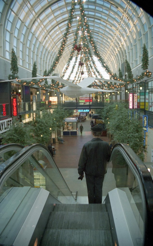 Muovikuuset ovat kuuluneet kauppojen ja ostoskeskusten joulusomisteisiin vuosikymmeniä. Kuvassa kauppakeskus Itäkeskus jouluna 2001. Kuvaaja: Rinna Härkönen. Työväen Arkisto.