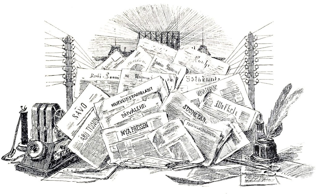1890-luvun sanomalehtiä. Kansalliskirjaston Digitaaliset aineistot. Kuvan muokkaus: Satu Sorvali.