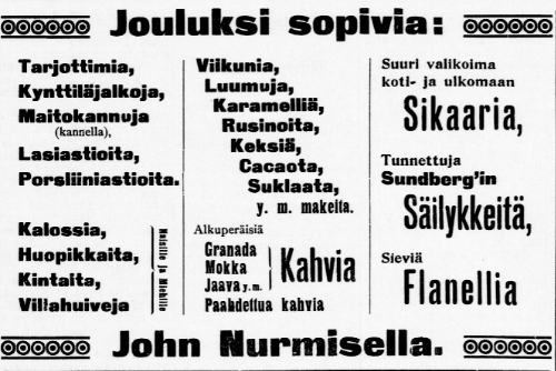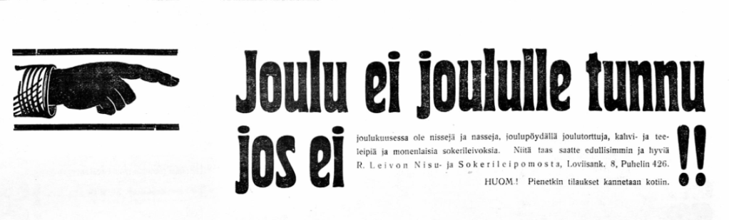 Joulupukin porot ovat tuttuja lapsille ja aikuisille ympäri maailman, ja esimerkiksi Yle lähettää vuosittain ympäri maailman videon Joulupukin matkaan lähdöstä poron vetämällä reellä. Digitoiduista lehdistä juttuja poroista ja jouluista oli kuitenkin haastavaa löytää – viitataanhan suomen kielen ”poro”-sanalla esimerkiksi kahvin- tai tupakanporoihin tai siihen kuinka jokin palaa poroksi. Hakusanalla ”jouluporo” ei osumia myöskään tullut niin paljoa kuin itse alkuun ajattelin, mutta joukosta löytyi hauskojakin juttuja. Esimerkiksi Seura-lehdessä julkaistiin joulukuussa 1940 kaava ”pieneen käsityöhön”, jouluporoon, jonka voi valmistaa esimerkiksi ”kauniinvärisestä kiiltopaperista” (Seura 11.12.1940). Sirkka-lehden joulunumerossa vuonna 1936 puolestaan kerrottiin Korkeasaaren eläinten joulusta. Tarhan porojen kerrotaan ”elävän joulua jäkälän, naavan ja poropulkkien lumoissa”. Poroilla kerrotaan joulumuistojen olevan ”läheisemmät kuin monilla muilla eläimillä. Kuuluuhan poro Lapin eläimenä ikään kuin osana joulupukkiin.” (Sirkka 1.1.1936.)