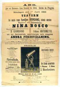 Nina Bosco, Giordanon perheseurueen juliste 1883. Kokoelma: Offentliga nöjen i Åbo under 1800-talet.